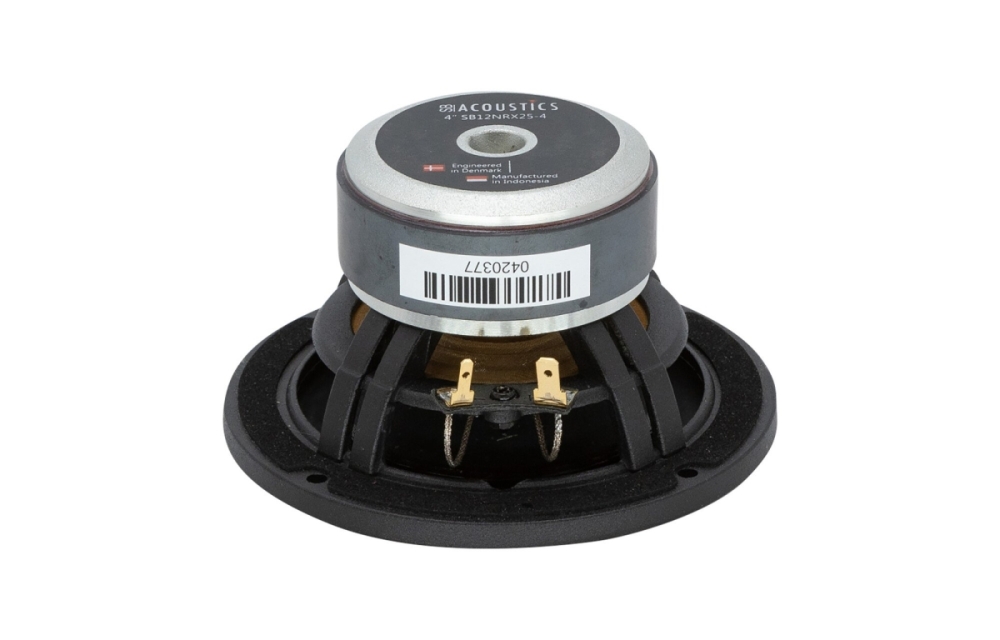 SB Acoustics SB12NRX25-4 er en 4-tommers bass/mellomtone med Norex™-membran av naturlige fibre, tilpasset lydsystemer der detaljrikdom og lav forvrengning er viktig. Elementet har en robust konstruksjon med ventilert aluminiumschassis og høydempende butylgummioppheng, som gir stabil ytelse og ren lydgjengivelse i mellomtonen.