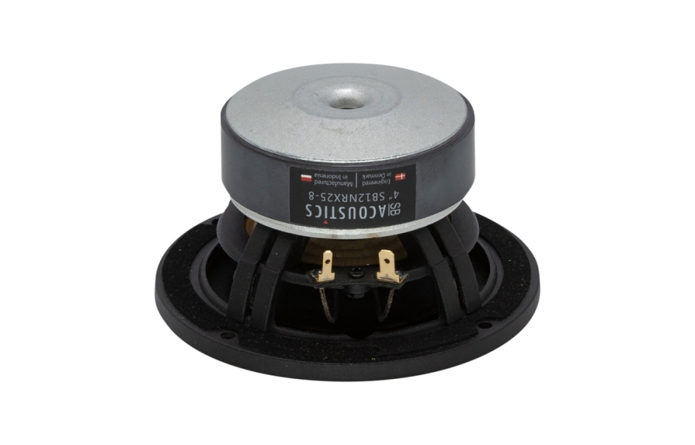 Den egenutviklede membranen av naturlige fibre og butylgummiopphenget gir en resonansfri og naturlig lyd med god kontroll i mellomregisteret. Den lette talspolen og kortslutningsringen reduserer forvrengning, noe som gir klare og dynamiske toner opp til ca. 5 kHz. SB12NRX25-8 er et godt valg for kompakt bass/mellomtone i høykvalitets lydsystemer.