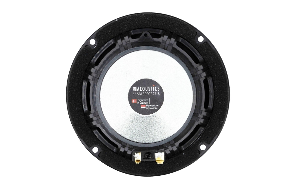 SB Acoustics SB13PFCR25-8 er en 5-tommers mellomtonebass fra PFC-serien som passer i kompakte systemer hvor naturlig og dynamisk lyd med lav forvrengning etterspørres. Membranen av naturlige fibre gir god stivhet og demping, mens den myke gummiopphenget forbedrer transientresponsen for klarere mellomtone og bass. Den ventilerte konstruksjonen og det optimaliserte motorsystemet reduserer kompresjon og gir stabil ytelse selv ved høy belastning.