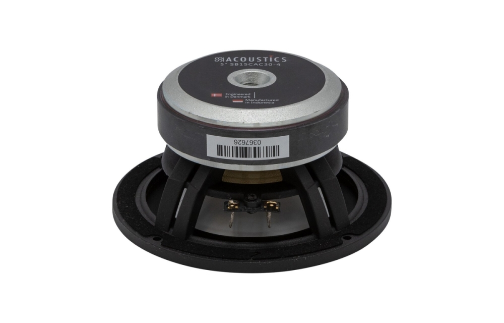 SB Acoustics SB15CAC30-4 er en 5-tommers midwoofer med keramisk belagt aluminiums-membran som gir stiv og kontrollert kolbe-bevegelse for klart og detaljert mellomregister og bass. Den passer perfekt i kompakte høyttalerkasser der du ønsker lav forvrengning og rask transientrespons, takket være ventilasjon i aluminiumschassiset og lett CCAW-talspole. Med 4 ohm impedans og 50 W effekttoleranse er den lettdrevet og fungerer godt med både originalsystemer og ettermarkedsforsterkere.