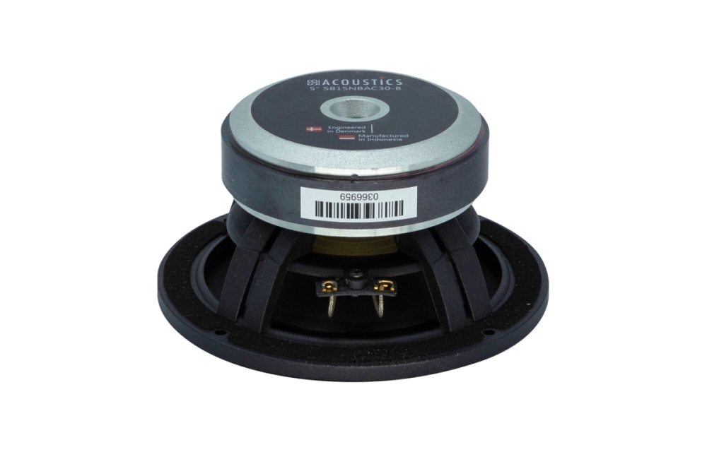 SB Acoustics SB15NBAC30-8 er en 5-tommers bass/mellomtone med geometrisk forsterket aluminiumkon og ventilert støpt aluminiumchassis som gir stabil og effektiv membranbevegelse. Den myke gummiringen og CCAW-talspolen bidrar til lav forvrengning og god dynamikk, noe som gjør den egnet for høyverdige lydsystemer hvor tydelig mellomtone og bass er viktig.