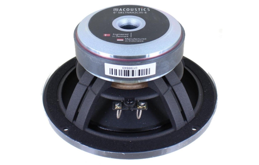 SB Acoustics SB15NRX2C30-4 er en 150 mm (5") bass/mellomtone fra Norex-serien, utviklet for å levere en naturlig og dynamisk lyd med lav forvrengning. Membranen av naturlige fibre gir både stivhet og demping, mens den ventilerte aluminiumsrammen og polstykket minimerer kompresjon og forbedrer kjølingen. Talspolen på 30 mm er viklet med lett CCAW-tråd for rask respons og lav masse, noe som sammen med den myke gummiopphenget gir en klar og detaljert mellomtone som passer i krevende lydsystemer.