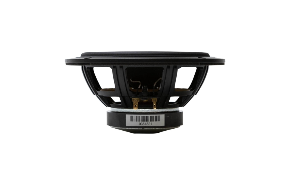 Membranen er laget av naturlige fibre som gir en god balanse mellom stivhet og demping, noe som reduserer uønskede resonanser og forvrengning. Gummiopphenget er mykt og har lav demping, noe som forbedrer høyhastighetsreaksjonen og transientene i lyden. Det ventilerte og forsterkede plastchassiset bidrar til effektiv kjøling og stabil montering, samtidig som det minimerer resonanser for en renere lyd.