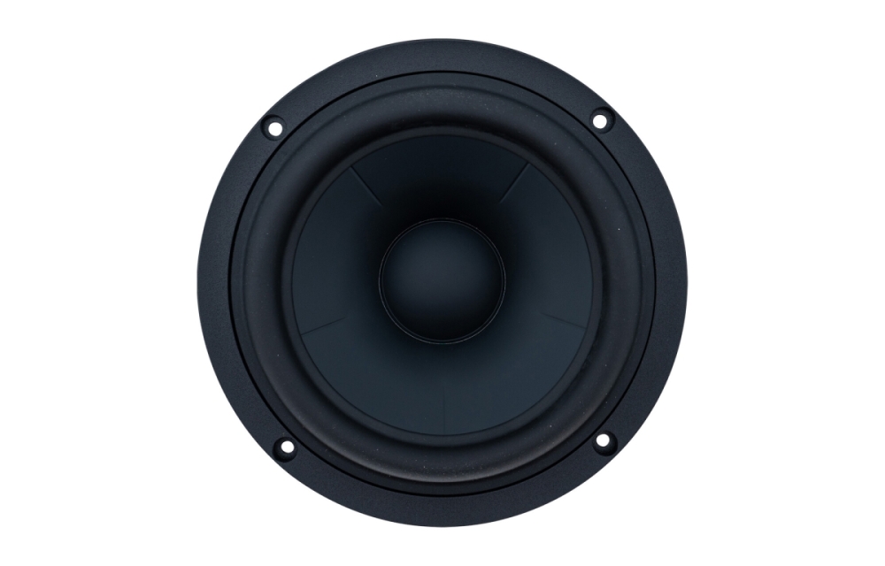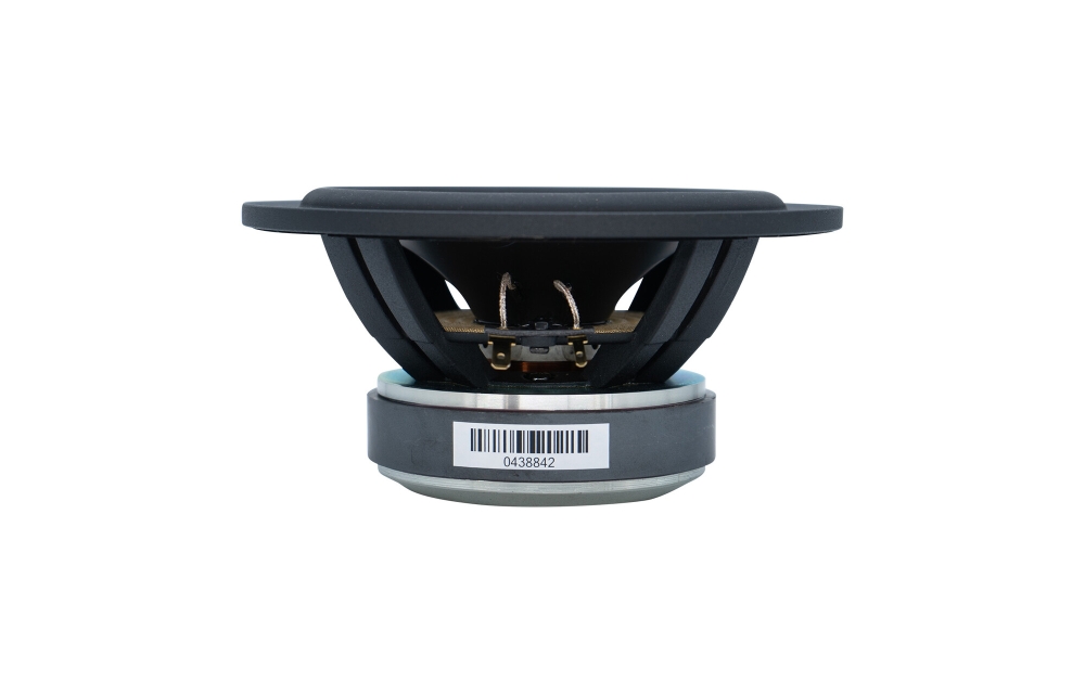 Med en CCAW-talspole og forlenget kobberslange reduseres induktans og forvrengning, noe som gir stabil og lineær stempelføring selv ved høyere effekter. Det ventilerte polstykket bidrar til effektiv kjøling og redusert termisk kompresjon. Resultatet er en mellomtone som tåler 60 W kontinuerlig effekt og leverer tydelig mellomregister og fyldig bass med god kontroll og lav forvrengning.