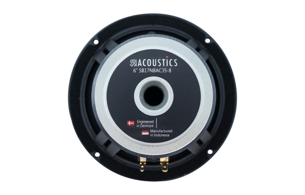 SB Acoustics SB17NBAC35-8 er en 6-tommers mellomtone med geometrisk forsterket aluminiumskeie og ventilert støpt aluminiumsramme som gir stabil konstruksjon og lav kompresjon. Den myke gummikanten og den lette CCAW-talspolen sammen med ventilert polstykke og forlenget kobberslange sikrer nøyaktig og stabil stempelføring med lav forvrengning, noe som gir klart og kraftfullt mellomregister og bass i lydsystemer av høy kvalitet.