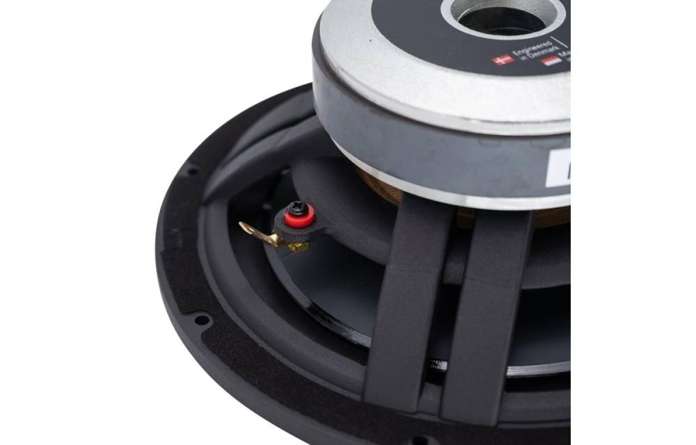 SB Acoustics SB23NBACS45-4 er en 8-tommers midbass med geometrisk forsterket aluminiumkon og lav impedans (4 Ω) som passer for krevende bil- og hjemmekinoanlegg. Elementet har en ventilert støpt aluminiumskurv og kortslutningsring som sammen minimerer forvrengning og kompresjon, noe som gir renere og mer kontrollert bassgjengivelse selv ved høy belastning.