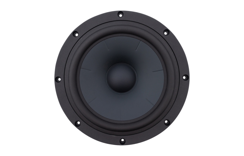 SB23NBACS45-8 har en robust men lett aluminiumskone som er geometrisk forsterket for å kontrollere uønskede resonanser og oppbrytning. Kortslutningsringen i motoren reduserer forvrengning ved høye lydnivåer, mens den ventilerte polstangen og aluminiumskurven effektivt reduserer kompresjon og varmeoppbygging. Det myke gummiopphenget med lav demping gir rask og presis transientrespons, noe som resulterer i en ren og detaljert lyd med god kontroll i mellomtone og bass.