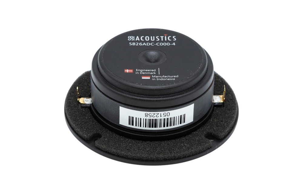 SB Acoustics SB26ADC-C000-4 er en diskant med aluminiumdome som passer i avanserte høyttalersystemer hvor du ønsker detaljert lyd uten uønskede resonanser. Den er optimalisert for å gi en sammenhengende og ren høyfrekvent gjengivelse med lav forvrengning takket være en velbalansert motor og en faseoptimalisert membrandesign. Med lav resonansfrekvens og høy effekttoleranse takler den krevende lydmiljøer og gir forbedret dynamikk i mellomtone og diskant.