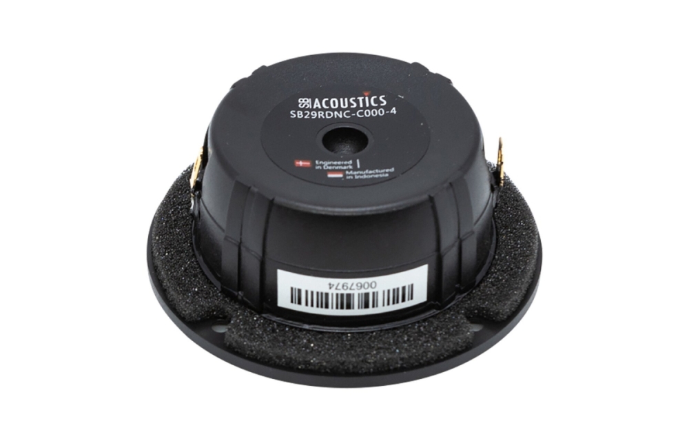 SB Acoustics SB29RDNC-C000-4 er en 29 mm ring-dome diskant med non-resonant membran som minimerer resonans og høyfrekvensbrytning for rent lyd. Den har en kopperkapsel på polstykket som senker talspoleinduktansen, en lett CCAW-talspole for rask respons og intern trykkutjevning for jevn gjengivelse. Kompakt neodymmotor og sølvledere gir høy følsomhet og stabil ytelse, perfekt for kvalitetsbygg og oppgraderinger.