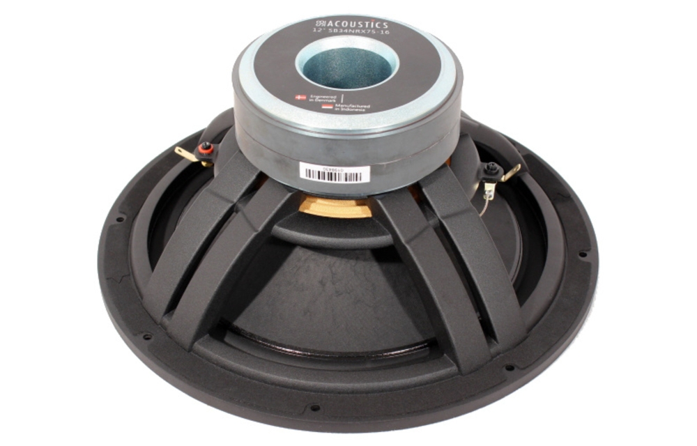 SB34NRX75-16 har en hard papirmembran som gir naturlig og kontrollert bassgjengivelse. Den høye impedansen gjør den egnet for spesialbygde systemer som krever 16 Ω, mens den lave resonansfrekvensen og store membranflaten gir dyp og kraftfull bass uten port. Gummiringen er optimalisert for lav demping, noe som forbedrer dynamikken og følsomheten i bassregisteret.