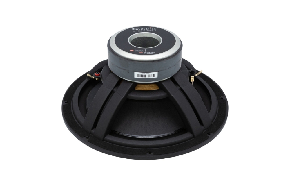 SB Acoustics SB34NRX75-6 er et 12-tommers basselement som passer for avanserte basskasser og subwoofere. Med en stor 3" talespole og et støpt aluminiumchassis får du høy holdbarhet og effektiv varmehåndtering, noe som gir stabil ytelse selv ved høye effekter. Elementets lave demping i surrounden og spesialproduserte konmaterialer i hardpapir gir en kontrollert og kraftfull bassgjengivelse med lav forvrengning.