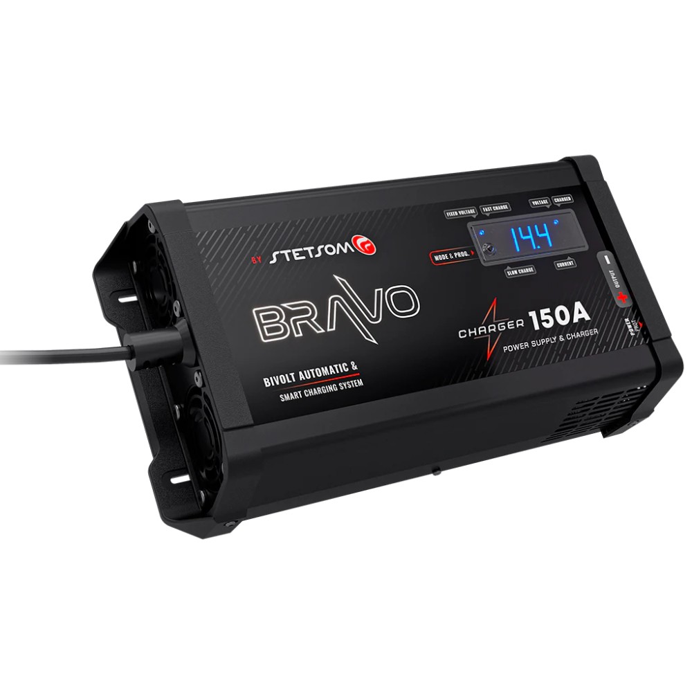 Stetsom BRAVO Charger 150A er en intelligent strømforsyning utviklet for både å lade batterier og drive strømkrevende bilstereoutstyr uten avbrudd. Med smart ladekontroll beskyttes batteriene mot unødvendig slitasje, samtidig som systemet får stabil strøm selv under drift. Dette gjør BRAVO Charger til et pålitelig knutepunkt i installasjoner der høy effekt, lang driftstid og trygg lading er avgjørende.