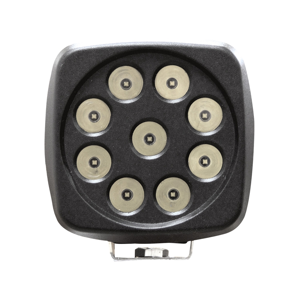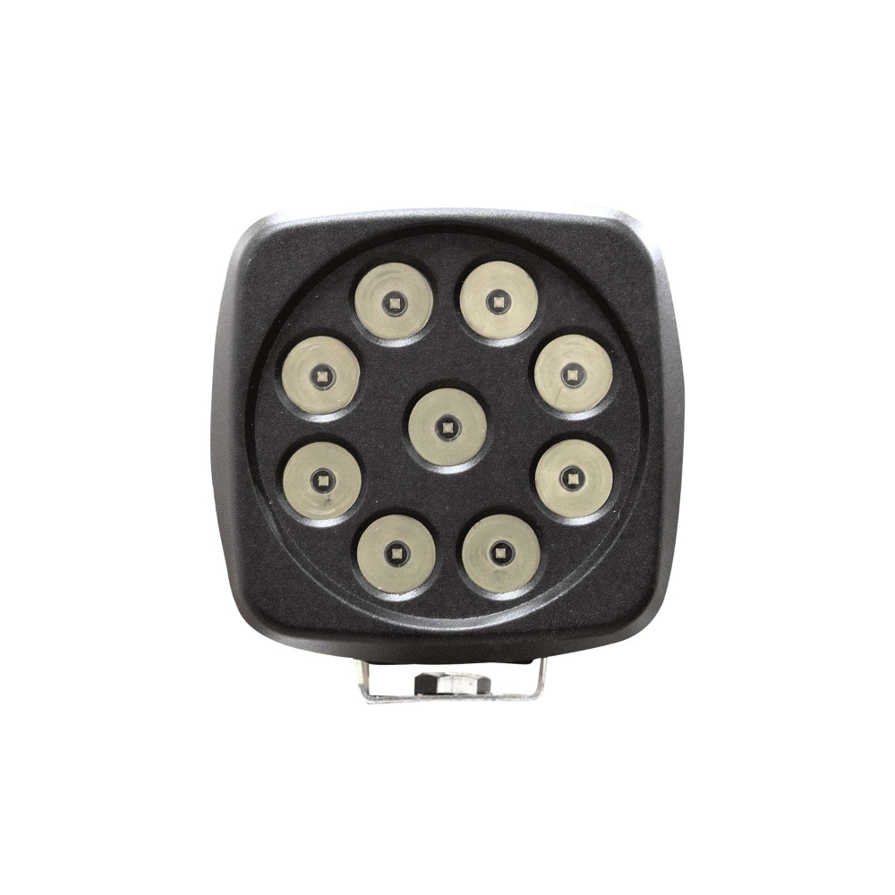 Et kvadratisk og robust arbeidslys på 27W med ni LED-dioder. Kompakt og massiv konstruksjon gjør lampen enkel å montere og passer svært godt for OEM og tøffe forhold. Leveres med 30 cm kabel og DT-kontakt. Produktdatablad