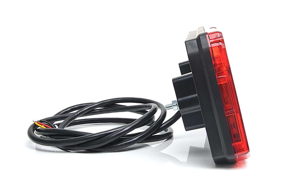Rektangulær høy LED baklampe med fem funksjoner: baklys, bremselys, blinklys, kjørelys og baklys.