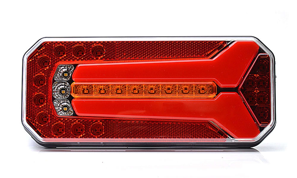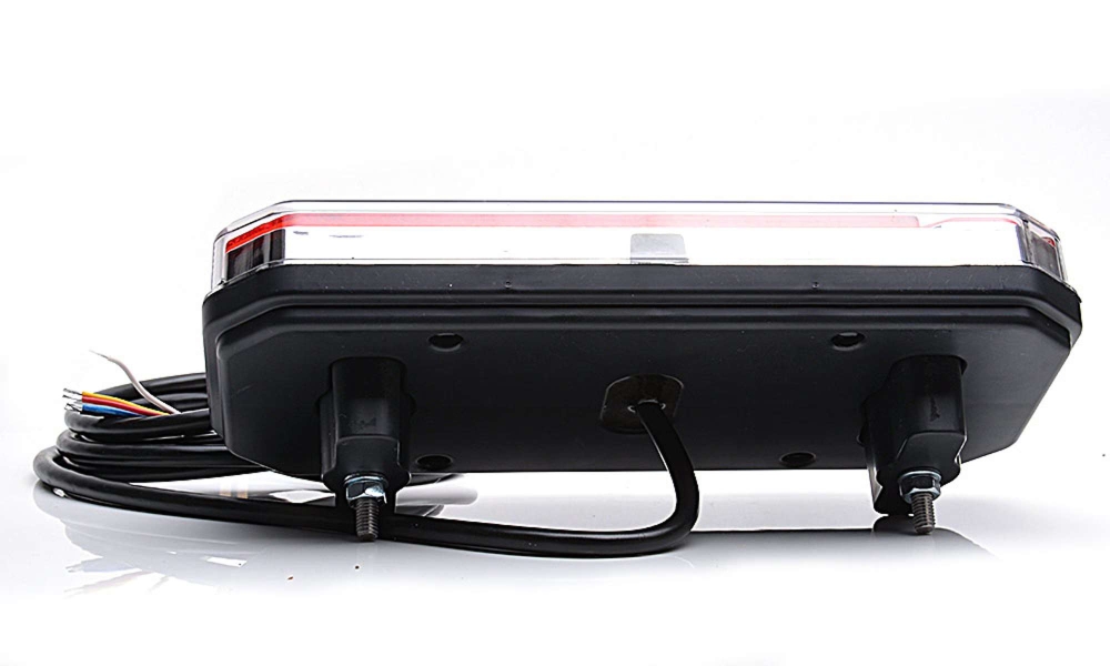 Moderne baklys med fem funksjoner: baklys, bremselys, blinklys, kjørelys og baklys. E-godkjent for vertikal og horisontal montering.