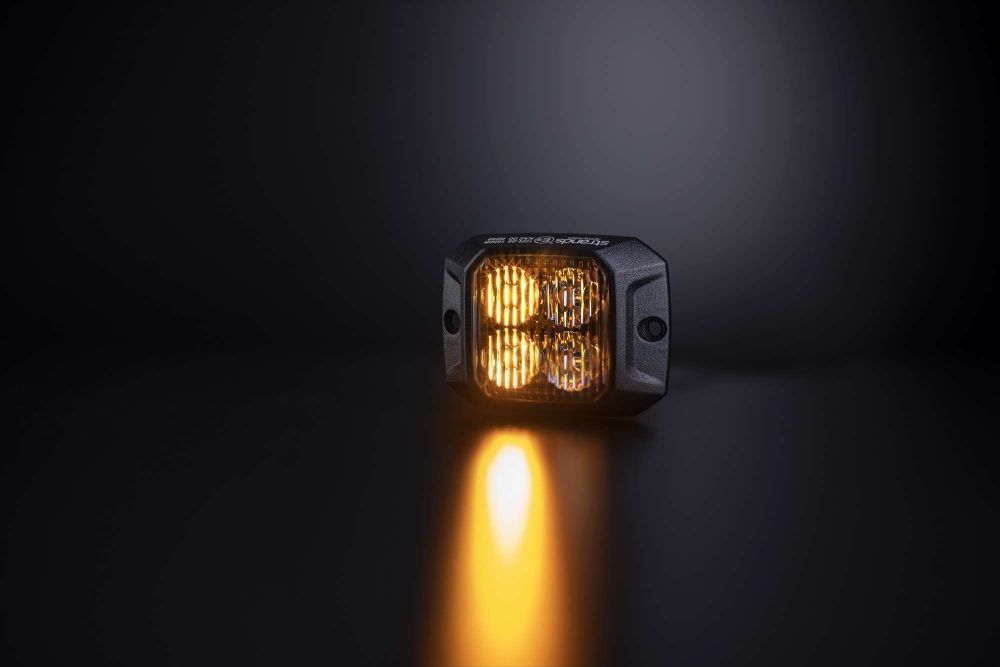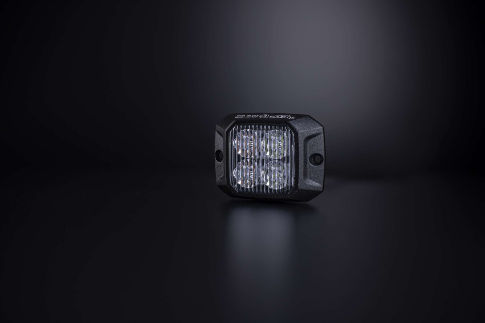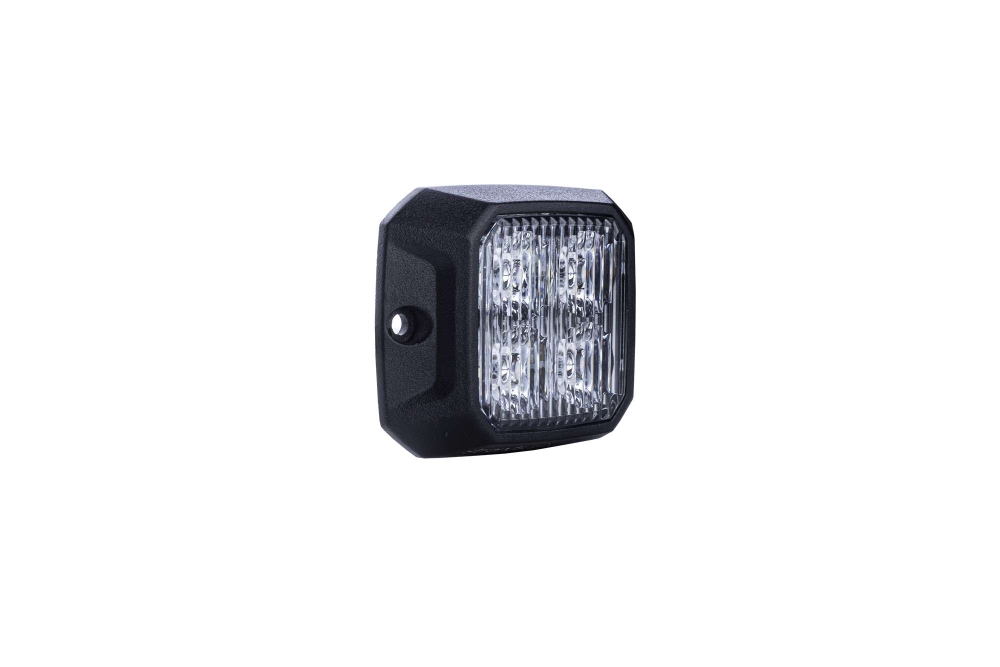LED-blitslys med klar linse for et moderne og tiltalende utseende. Solid konstruksjon med holdbarhet og funksjon i fokus. Den kvadratiske formen passer godt inn på de fleste typer kjøretøy. Den slanke høyden gjør at den integreres godt med karosseriet ditt. Fire LED-er gir deg en effektiv duo-funksjon, hvitt og orange lys – noe som øker synligheten din på veiene. E-godkjent i henhold til ECE R65. Leveres med 300 mm isolert kabel.4 LED slank oppbygging Duo-funksjon – hvitt og orange lys.