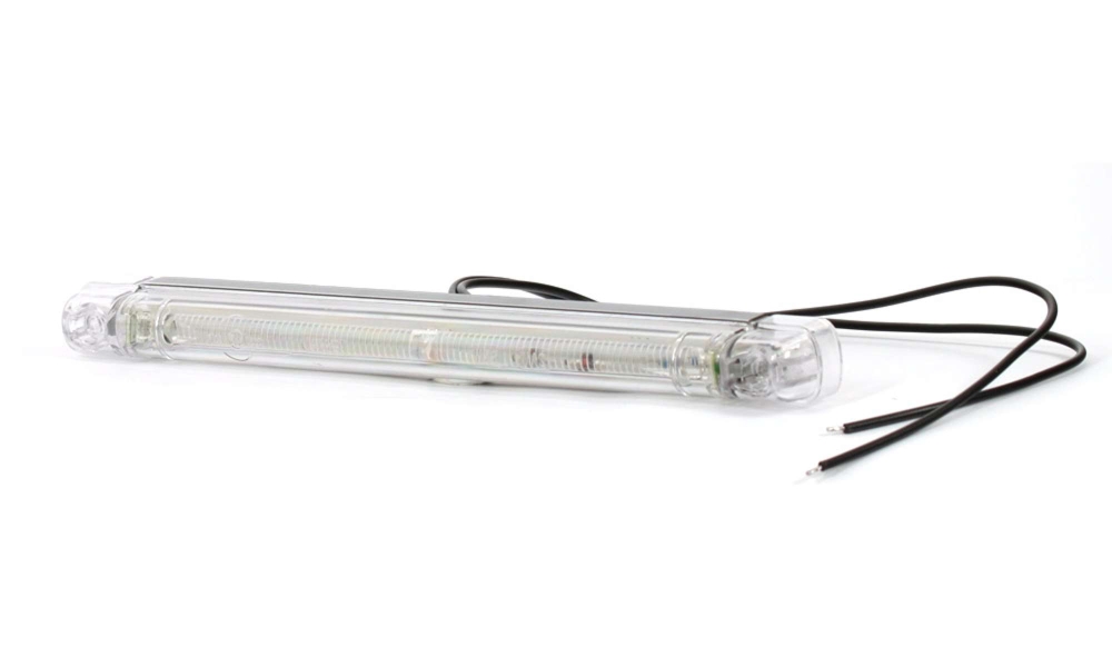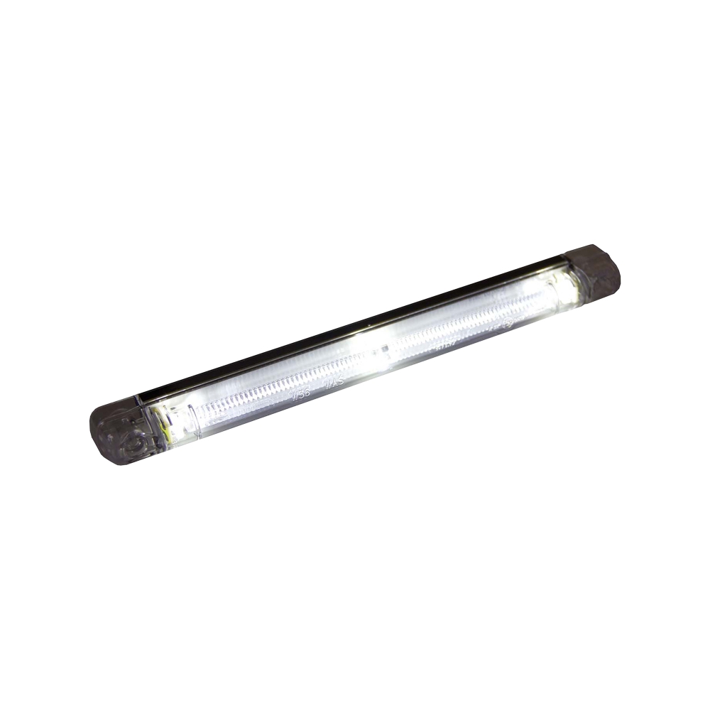 Langstrakt hvitt LED-posisjonslys med ni dioder og klart glass. Robust design som utstråler kvalitet og holdbarhet.Produktblad