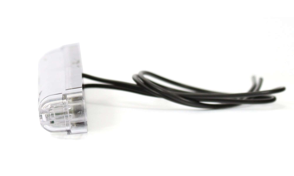 Avlangt hvitt LED-posisjonslys med ni dioder, klart glass og robust design for holdbarhet og kvalitet.