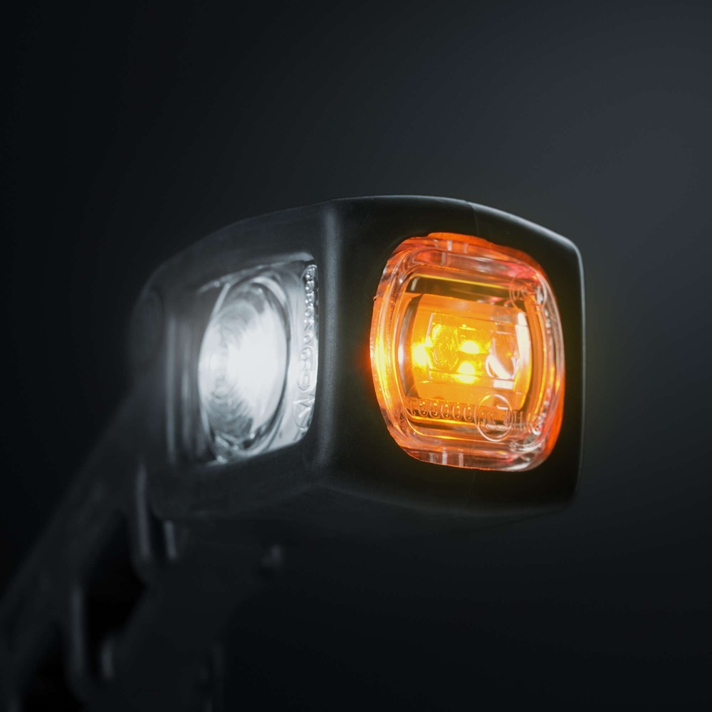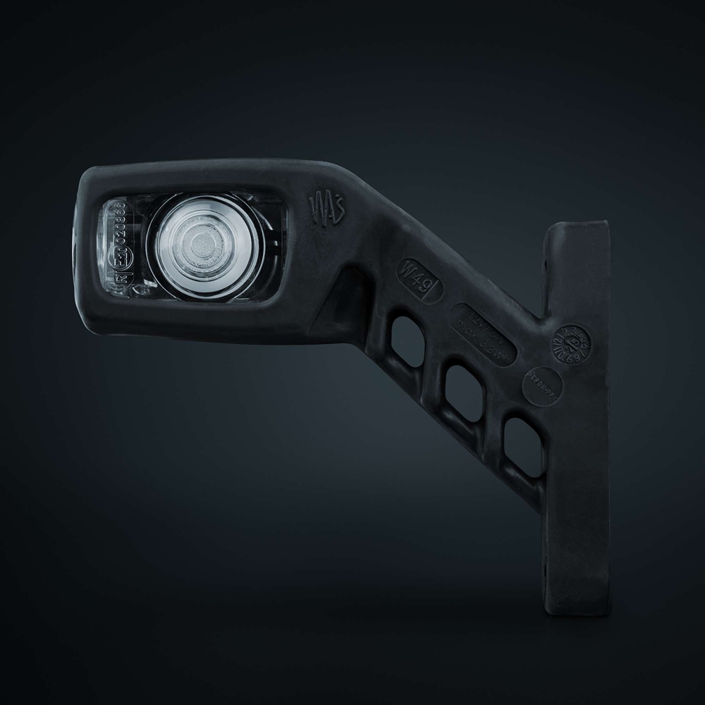 Kort gummiarm (venstre) med posisjonslys og sidemarkering. Armen er lett å montere og har klart glass som gir en pen finish. Et «alt-i-ett-alternativ» som bringer med seg kvalitet og enkelhet.Produktblad