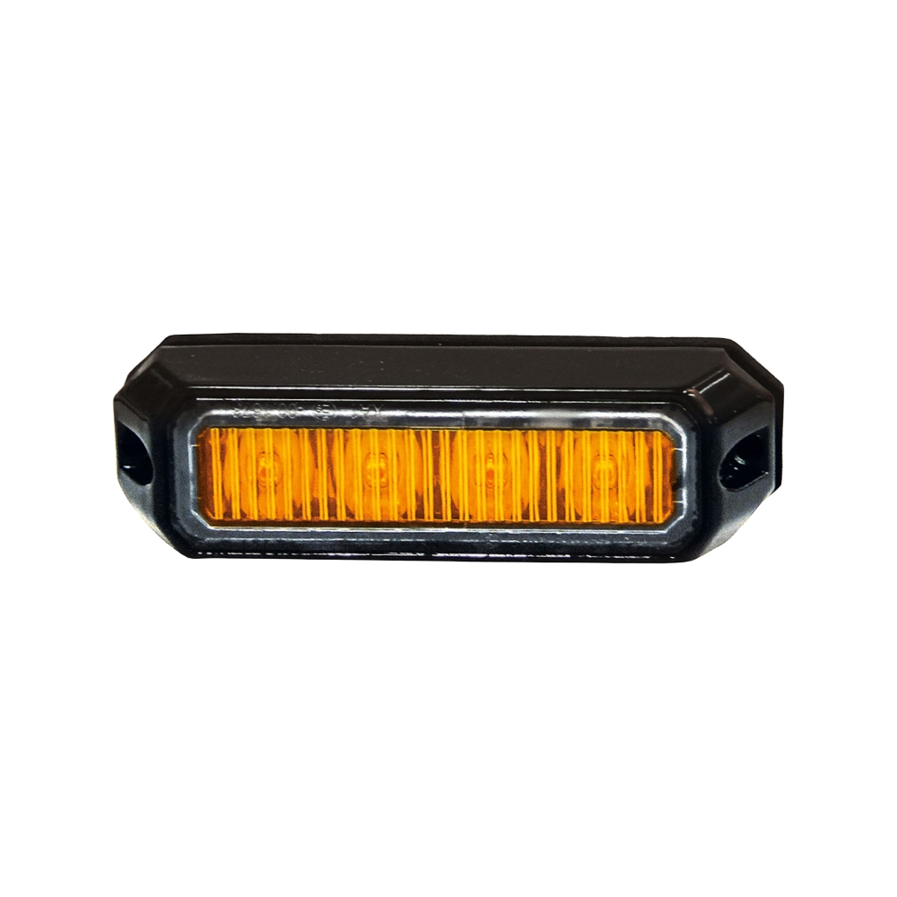 Stilrent oransje varselslys med svart ram. Inneholder 4 dioder og 18 blinkemønstre.Produktark