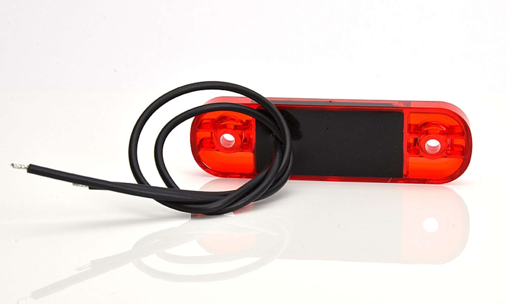Slank rød LED-posisjonslys med 12 dioder og rødt glass. Designen letter installasjonsprosessen og gjør lampen svært brukervennligProduktark