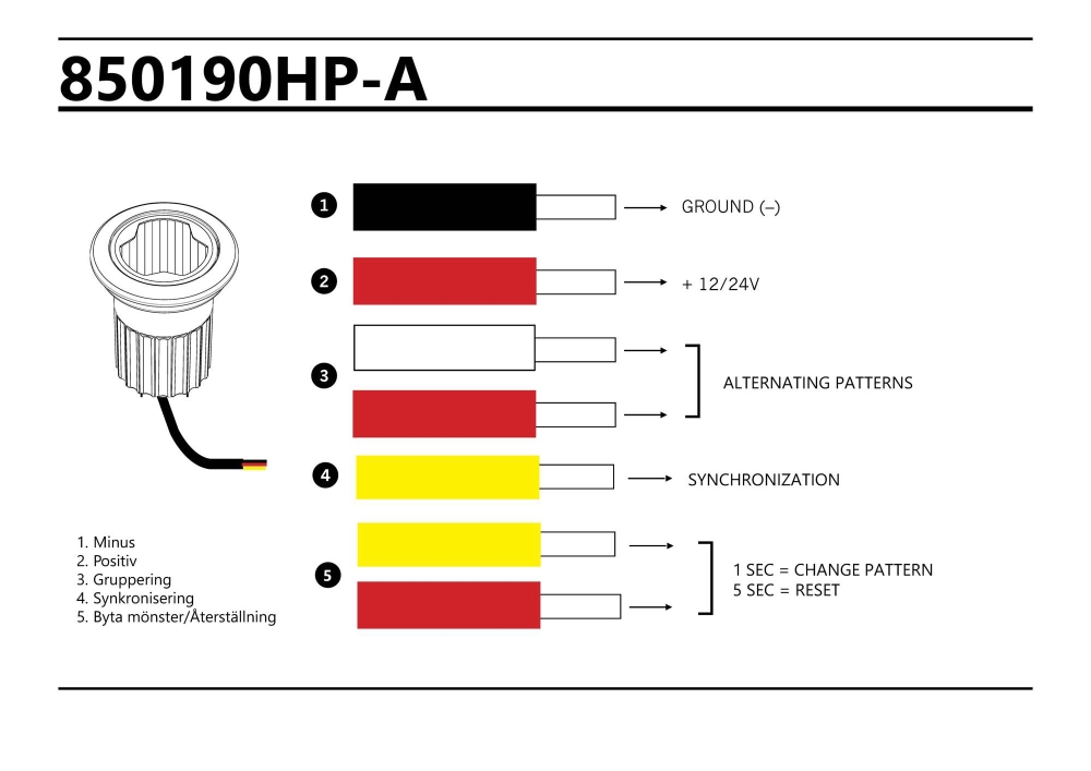 Et godkjent (ECE R65) slankt blinklys som kan foldes inn eller monteres med feste (art. nr 850191). Blinklyset stikker bare 3 mm ut når det er foldet inn, og det er mulig å synkronisere hele 8 blinklys av denne modellen.