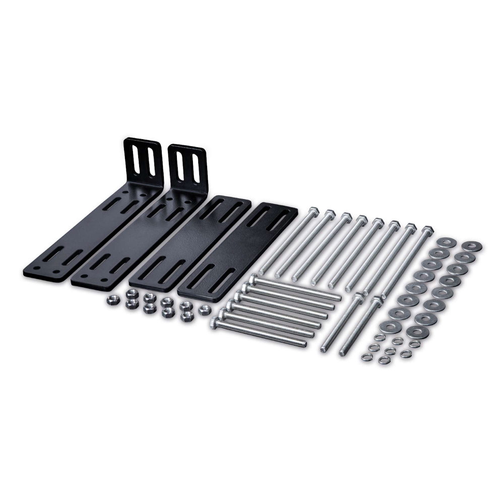 Fester i stål for sikker, skånsom montering av LED-ramper på biler og lette kjøretøy, med justerbare bolter og komplett monteringsmateriale.