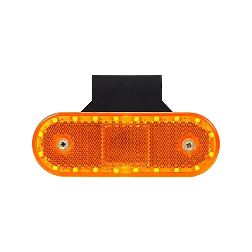 Rektangulær sidemerking med avrundede kanter, refleks og 20 LED-dioder for høy synlighet. Festemekanisme inngår.