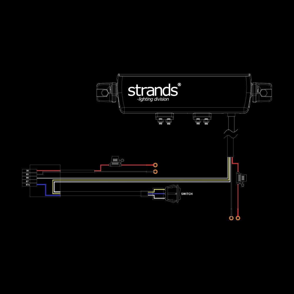 - Inkluderer: Monteringsfester, ledningsnett, gummipads og Strands logodeksler