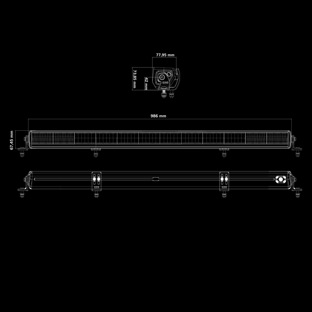 - Dimensioner: 986 x 78 x 67,5 mm (höjd inkl. fäste 73,9 mm)