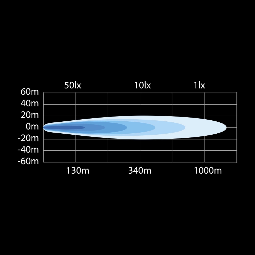 Med 2 stk. 9" flood og 1 stk 9" spot montert på en bil får du hele 29 000 faktiske lumen og 1 lux på 1195 meter. Med 6 stk. 9" spot montert på taket av en lastebil får du 60 000 faktiske lumen og 1 lux på hele 2449 meter.