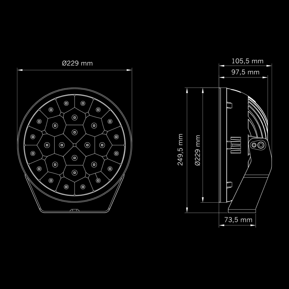 Kommer i tre ulike varianter, 7" med flood-lysbild, 9" med spot- eller flood-lysbild. Kombiner dem som du vil for å få en lysbild som er tilpasset de veiene og forholdene du kjører i. Variantene med flood-lysbild er E-godkjent.
