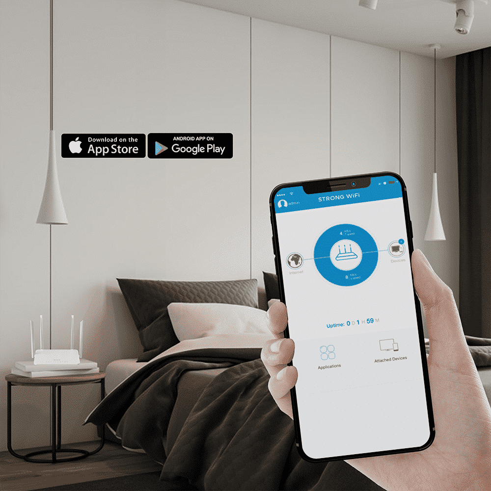 Uppgradera din internetupplevelse med Dual Band Gigabit Router 1200S från STRONG! Denna router, baserad på Wi-Fi 5-standarden, erbjuder en hastighet på upp till 1200 Mbit/s utan krav på inställningsändringar på ditt befintliga modem. På bara några minuter kan du förbättra ditt hemnätverk och njuta av bred, pålitlig och säker Wi-Fi-täckning över hela hemmet.