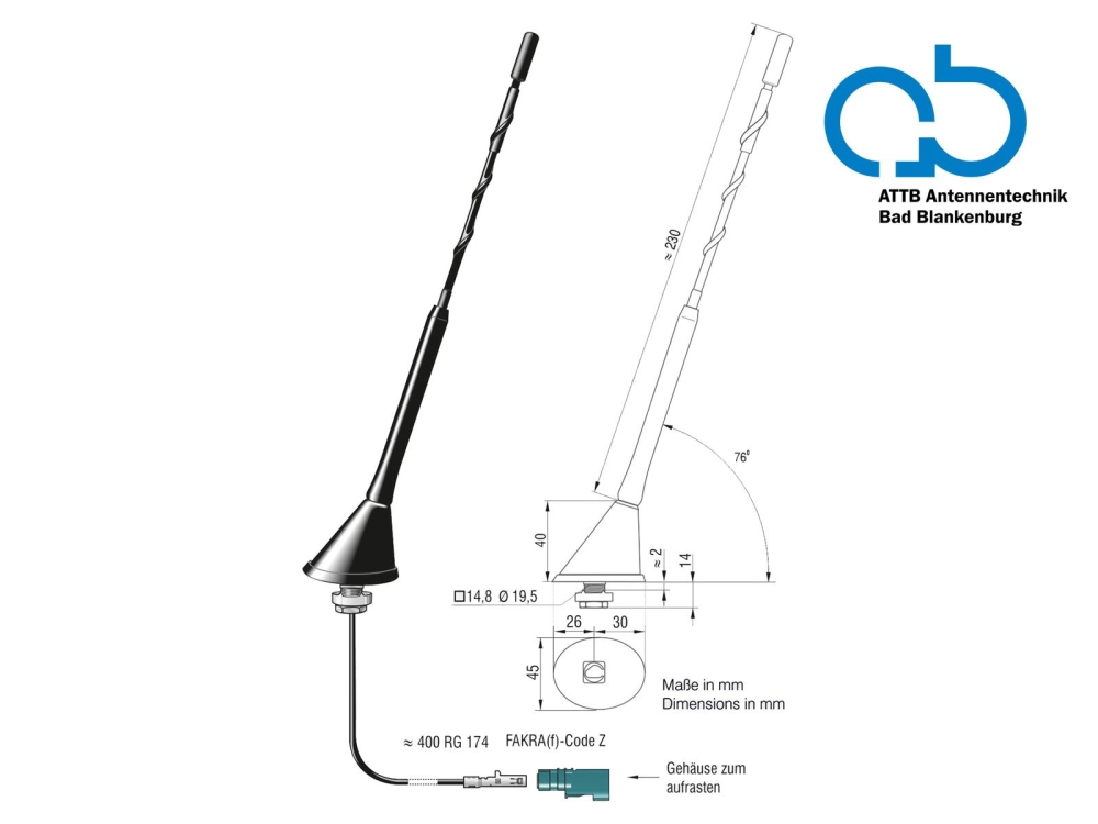 ACV 153-2116-01 er en takantenne for AM/FM og DAB+ med en helning på 76°. Produktet er laget i Tyskland og tilbyr høy kvalitet og pålitelighet.