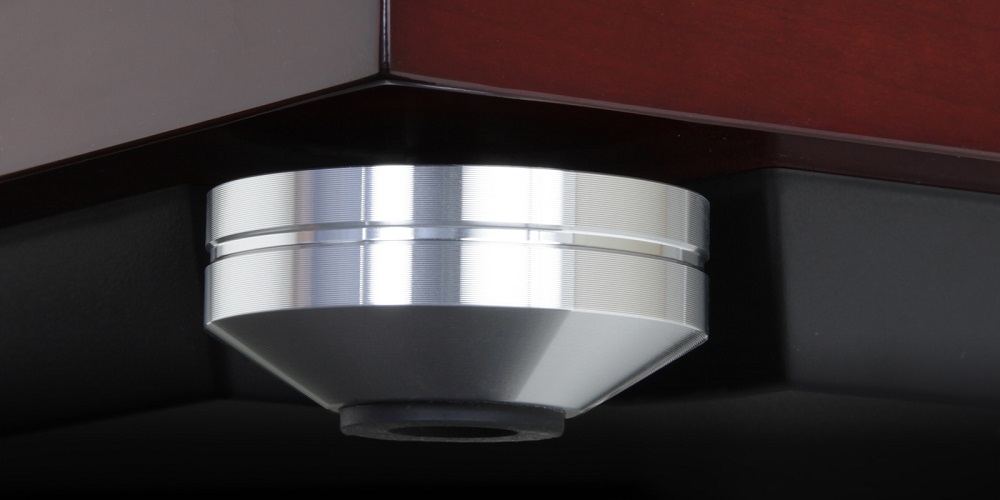Hela konstruktionen vilar på fyra specialdesignade fötter, som är tillverkade med ett bearbetat aluminiumskal, toppat med en gummikudde som är fixerad mot MDF-plinten med hög täthet. Tack vare dess utsökta dämpningsegenskaper blir TN-3B mycket motståndskraftig mot akustisk återkoppling.