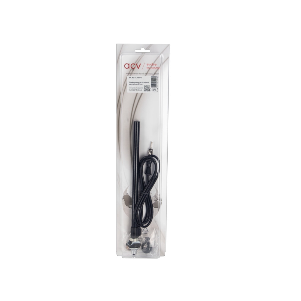 ACV 152000-41 er en teleskopantenne for AM/FM som er universell og passiv. Antennen har en diameter på 29 mm og er laget i svart farge.