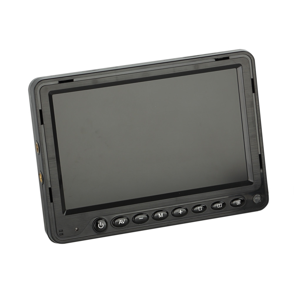 Monitoren har et robust design i plast med en pedestal for stabil plassering. Den er svart/antrasittfarget og passer inn i de fleste bilinteriører. Med en oppløsning på 640 x 480 (RGB) tilbyr den et klart og tydelig bilde. Strømforsyningen er mellom 12-24V DC, noe som gjør den kompatibel med mange kjøretøy. Målingene for monitoren er 146 mm i lengde, 109,5 mm i bredde og 29 mm i høyde, noe som gjør den kompakt og lett å installere i ulike rom.
